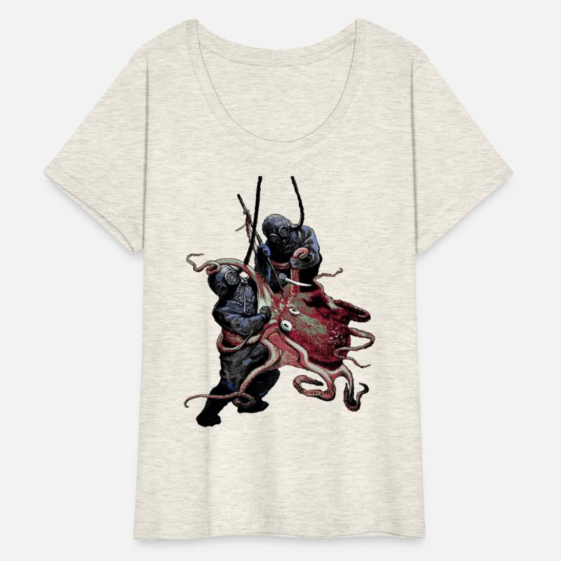 Vintage Helmet Divers Fighting Off a Big Octopus